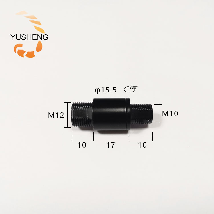 One external thread is M12*10 , the other side with M10*10 can 330 degree rotation.